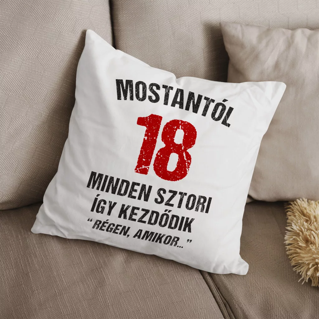 Humoros és stílusos ajándék 18. születésnapra, amely garantáltan mosolyt csal az ünnepelt arcára! Ez a puha, minőségi anyagból készült párna nemcsak kényelmes, hanem igazi dísze is lehet a szobának. A "Mostantól minden sztori így kezdődik: Régen, amikor…" felirat illik a felnőttek életérzéséhez. Szóval most kezdődnek a legjobb történetek!