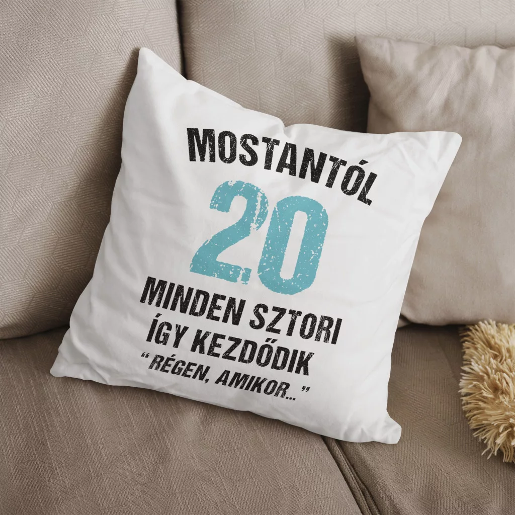 Tökéletes ajándék a kerek 20. születésnapra! Ez a puha, dekoratív párna nemcsak kényelmes, hanem vidám hangulatot is varázsol bármelyik szobába. A "Mostantól minden sztori így kezdődik: Régen, amikor…" felirat humorosan utal arra, hogy elkezdődött a felnőtt élet igazi kalandja. Legyen szó barátról, testvérről vagy kollégáról, ez a szülinapi párna garantáltan mosolyt csal az ünnepelt arcára.