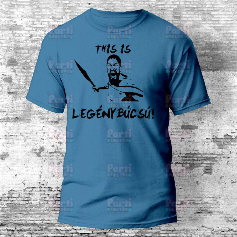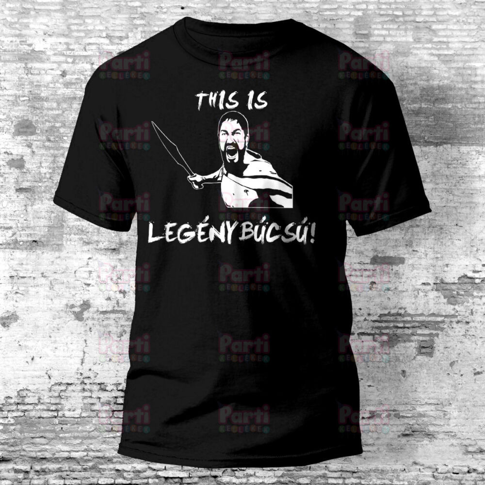 This is legénybúcsú feliratos és Leonidas mintás póló.